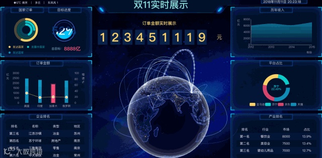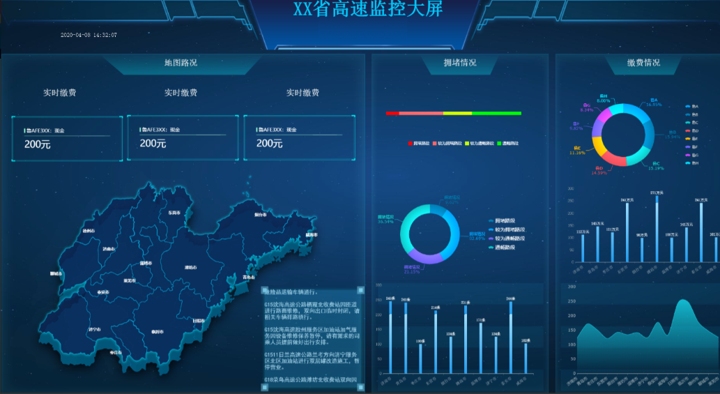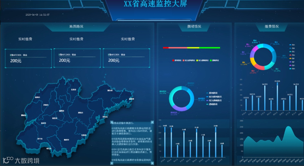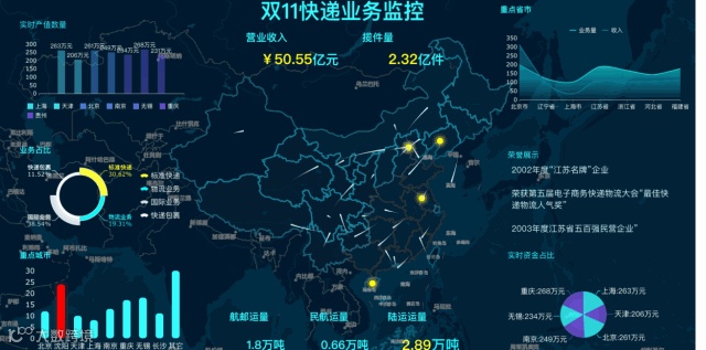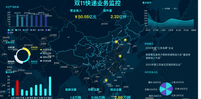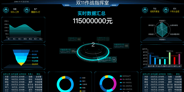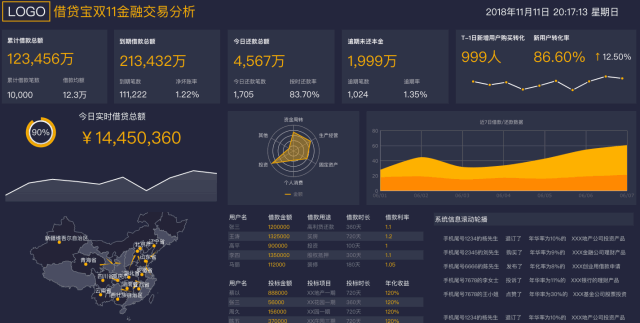 后来我们找到了市场上比较常见的企业级报表工具FineReport,能够将平时汇报总结里的可视化图片直接导出,最后我们部门依赖这个工具花了半天的功夫做出了好几张大屏: