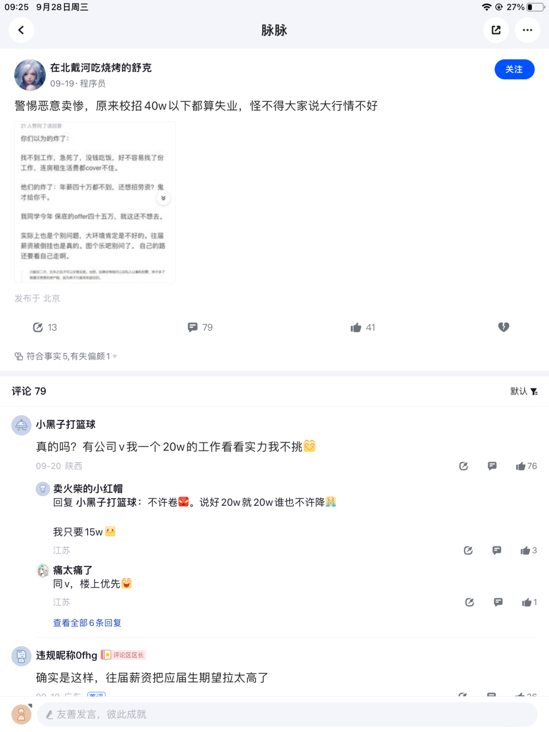 我真的想说不要恶意卖惨了,年薪40万以下就不愿意去,你有没有想过,大环境就是这样,只是计算机往年泡沫更多,今年给的没那么多了,就一口一个失业,无语了。