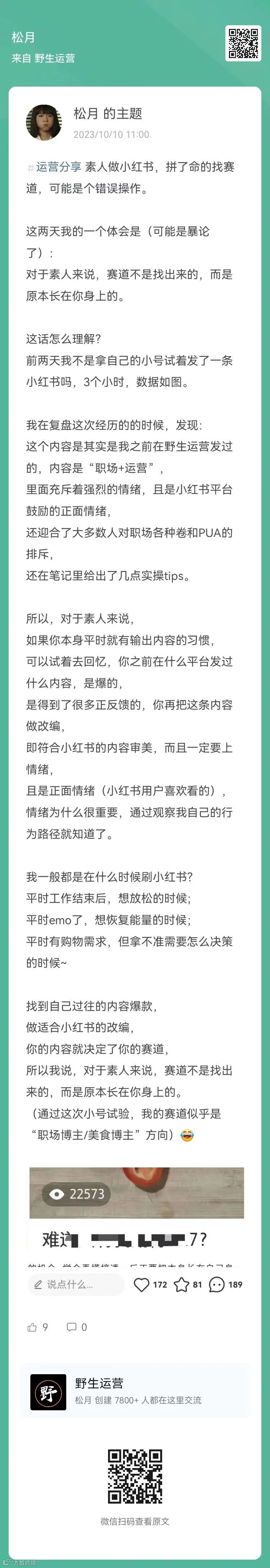 7、松月:素人做小红书,拼了命的找赛道,可能是个错误操作(扫码查看全文)