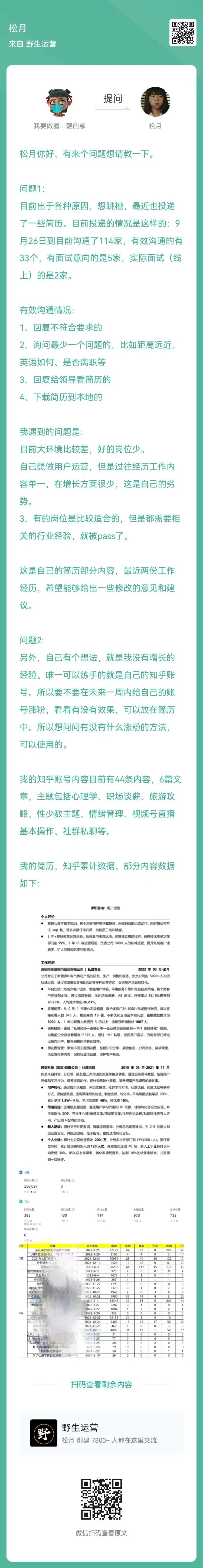 7、提问:可以给简历提供一些优化建议吗,我现在做知乎好物对工作经验积累有没有帮助?(扫码查看全文)