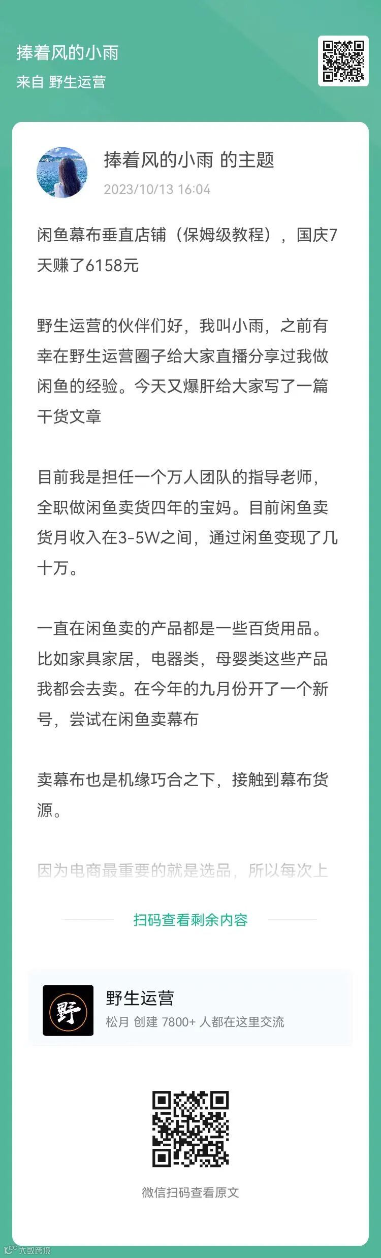 16、捧着风的小雨:闲鱼幕布垂直店铺(保姆级教程)(扫码查看全文)