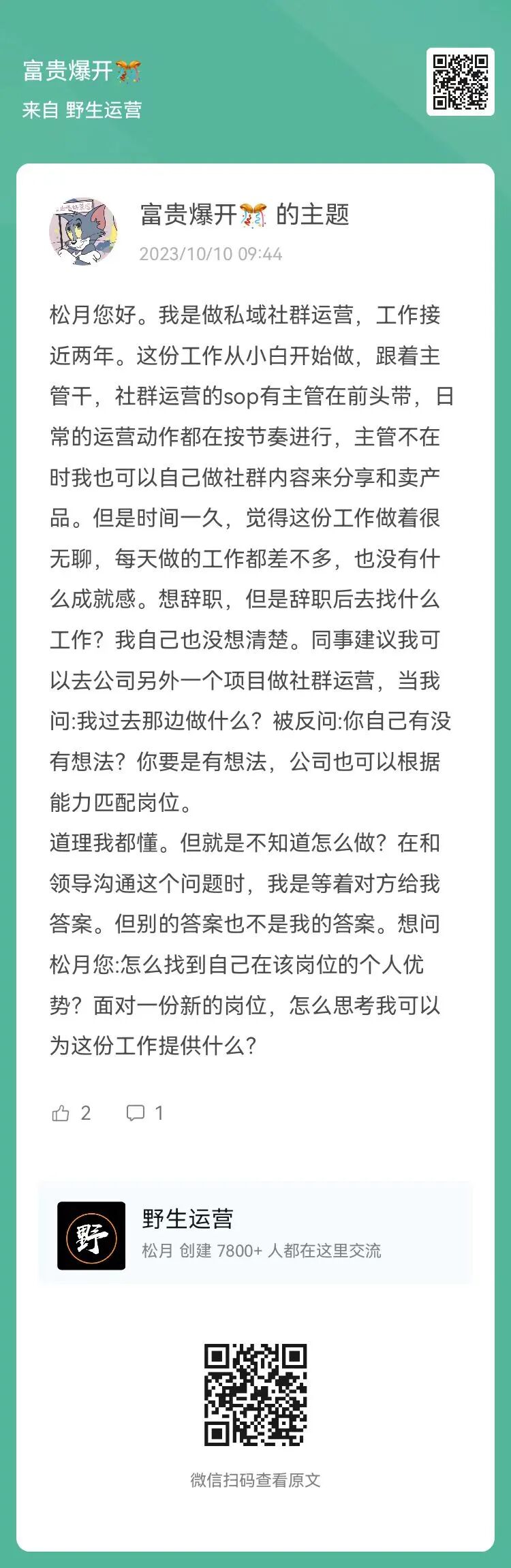 3、提问:怎么找到自己在该岗位的个人优势?面对一份新的岗位,怎么思考我可以为这份工作提供什么?(扫码查看全文)