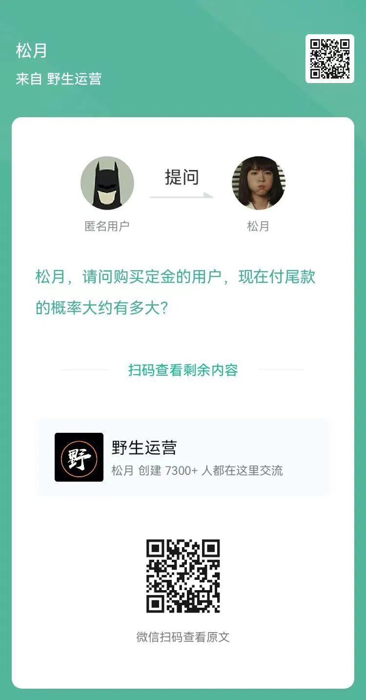5、提问:请问购买定金的用户,现在付尾款的概率大约有多大?(扫码查看全文)
