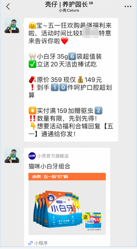 当你的私域在每天新增100 人以上的时候,如果还是在人工去手动去做履约发布,私域大概率就不用做了,因为用户一定会走,因为晚上6-8点钟是收货拆包裹的高峰期,心情非常愉悦,这个品牌给我发了个很这个不错的券,我也跟他那个留言了,唉,他不理我,真讨厌。