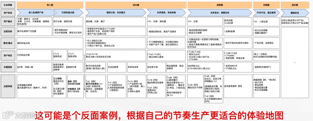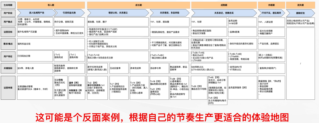 最本质上就是用户没有看到你的价值,或者说我们认为提供的价值对他有用,但他其实不care,所以我后来把这个体验地图撤掉了,但是这个地图给到的一个启示就是每一个公司或者每一个私域团队都要根据自己的节奏去生产比较合适的运营方法。