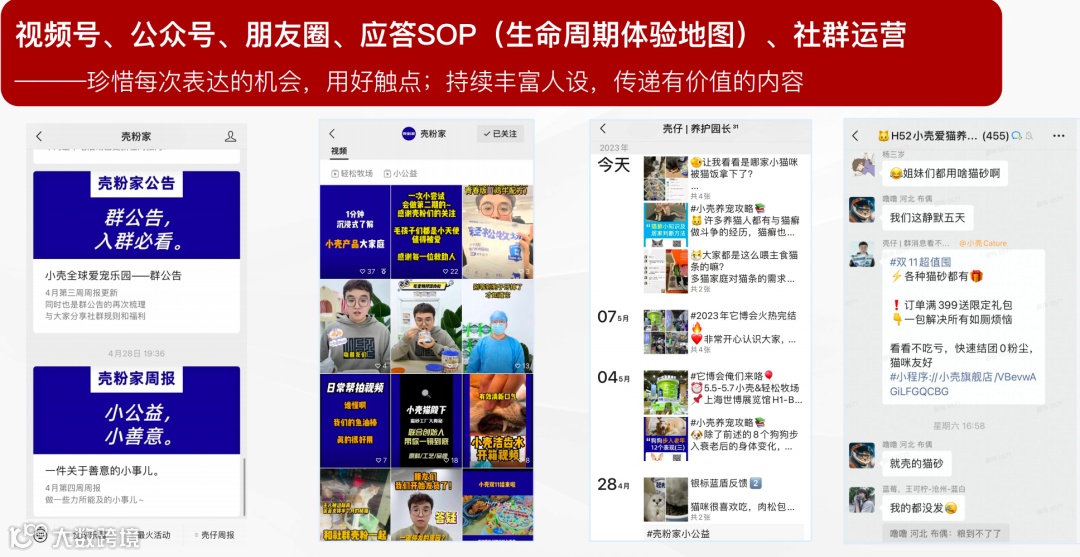 第三个部分——软化剂,怎么促活,怎么做用户关系的维系,关键是人设&内容,那些和售卖关系不强的部分,不可能天天让用户买买。