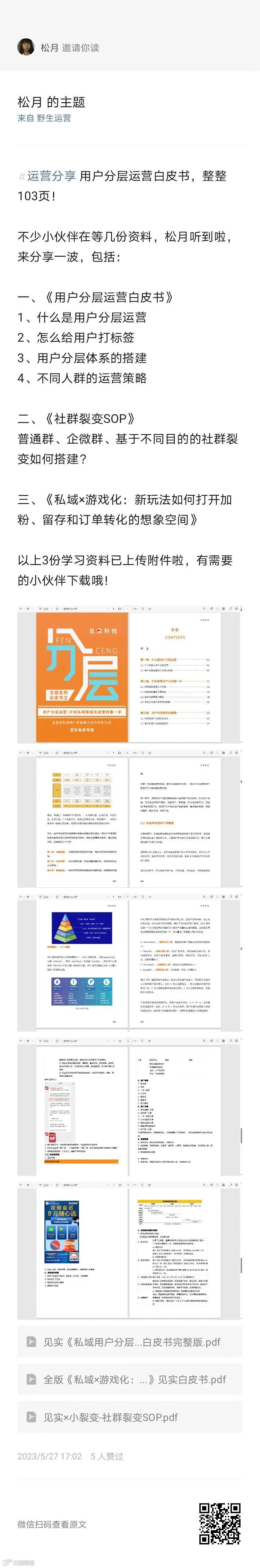 延伸阅读:关于精细化运营,用户分层是其中非常重要的抓手,上传一份我最近的学习资料《用户分层运营白皮书》整整103页!另外还有两份相关的主题化学习,《社群裂变SOP》和《私域×游戏化:新玩法如何打开加粉、留存和订单转化的想象空间》也一并上传啦!有需要的小伙伴记得查收哦!