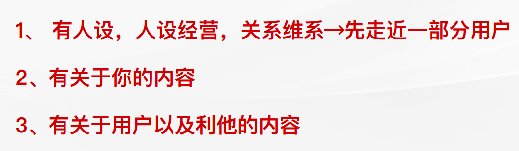 第一件就是一定要有人设,人设的经营就是我认为是内容输出与价值表达,先走进一部分用户,找到可以做和我们持续不断做产品种草和产品洞察的这样一批用户;