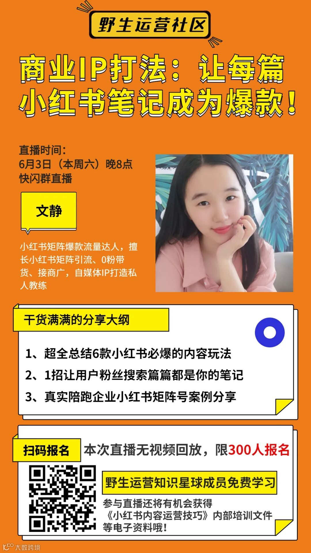 本周六晚8点,我邀请文静好文静,小红书矩阵爆款流量达人,擅长小红书矩阵引流、0粉带货、接商广,自媒体IP打造私人教练,带来分享《商业IP打法:让每篇小红书笔记成为爆款》。