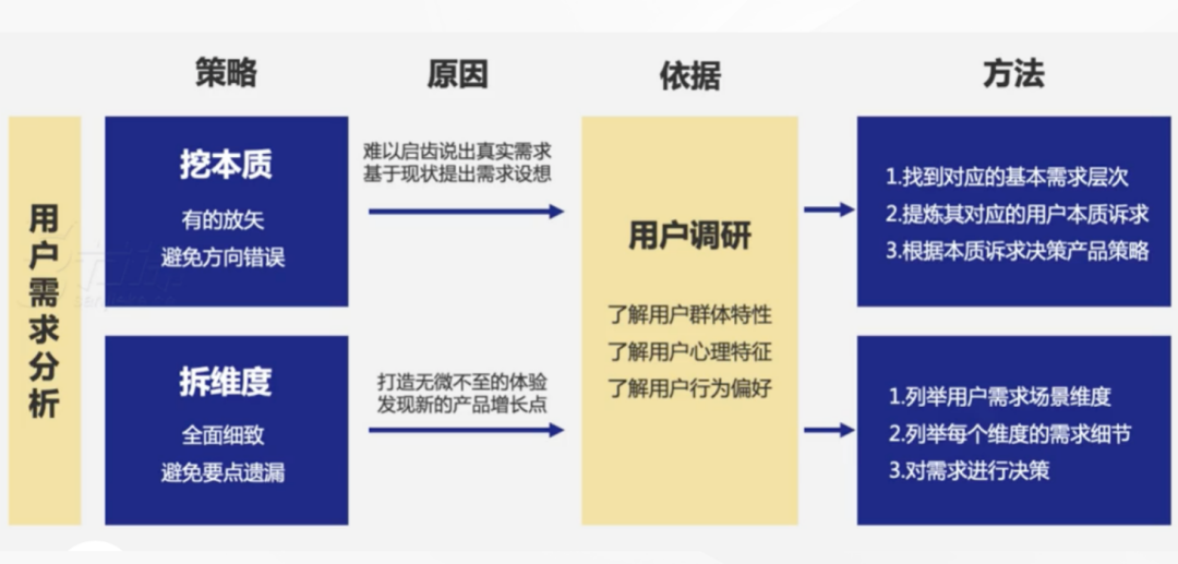 这个是关于做调研的一些方法论,你一定是先明确调研的需求,然后让用户能够基于你设计的问卷把他的反馈描述清楚,这个是最底层的一个方法论。