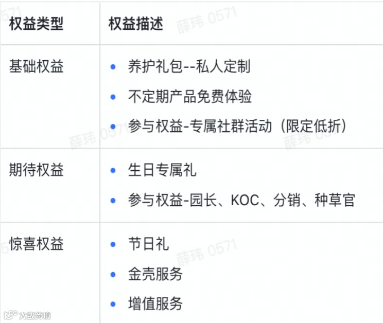 大家可以看到就是像这个 PPT 里面所讲到的就一些基础权益,一些定制的礼包,免费的派样,以及社群的专属活动,然后去根据模型去做的这样一个设计,期待的权益有哪些?然后又有哪些惊喜权益?