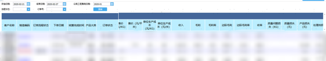 另外,老张还针对接单测算和实际生产设计了一套对应的流程,实现自动核算财务、生产数据指标,增加了数据的准确性,及时性。下图是“一单一核算”报表,点击制造号可以显示各种核算过程数据,核算规则