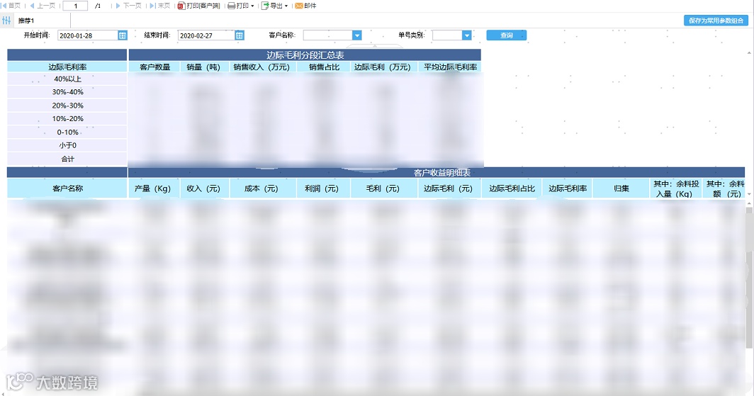 根据边际毛利,将客户进行分类统计,清楚的了解各种级别客户在公司所占的比例,为领导决策提供依据