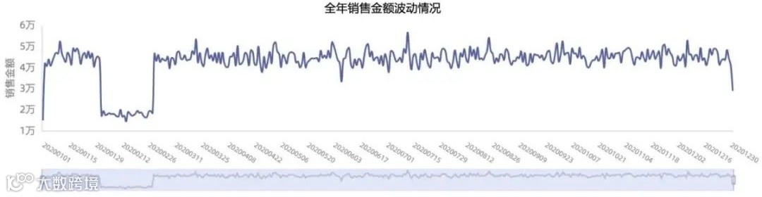 如下图,这张图到底是为了表达全量销售金额没有明显的增长呢?还是为了表达2月份销售金额断崖式下跌?还是为了表达其它什么主题呢。请在标题上明确的告诉听众。