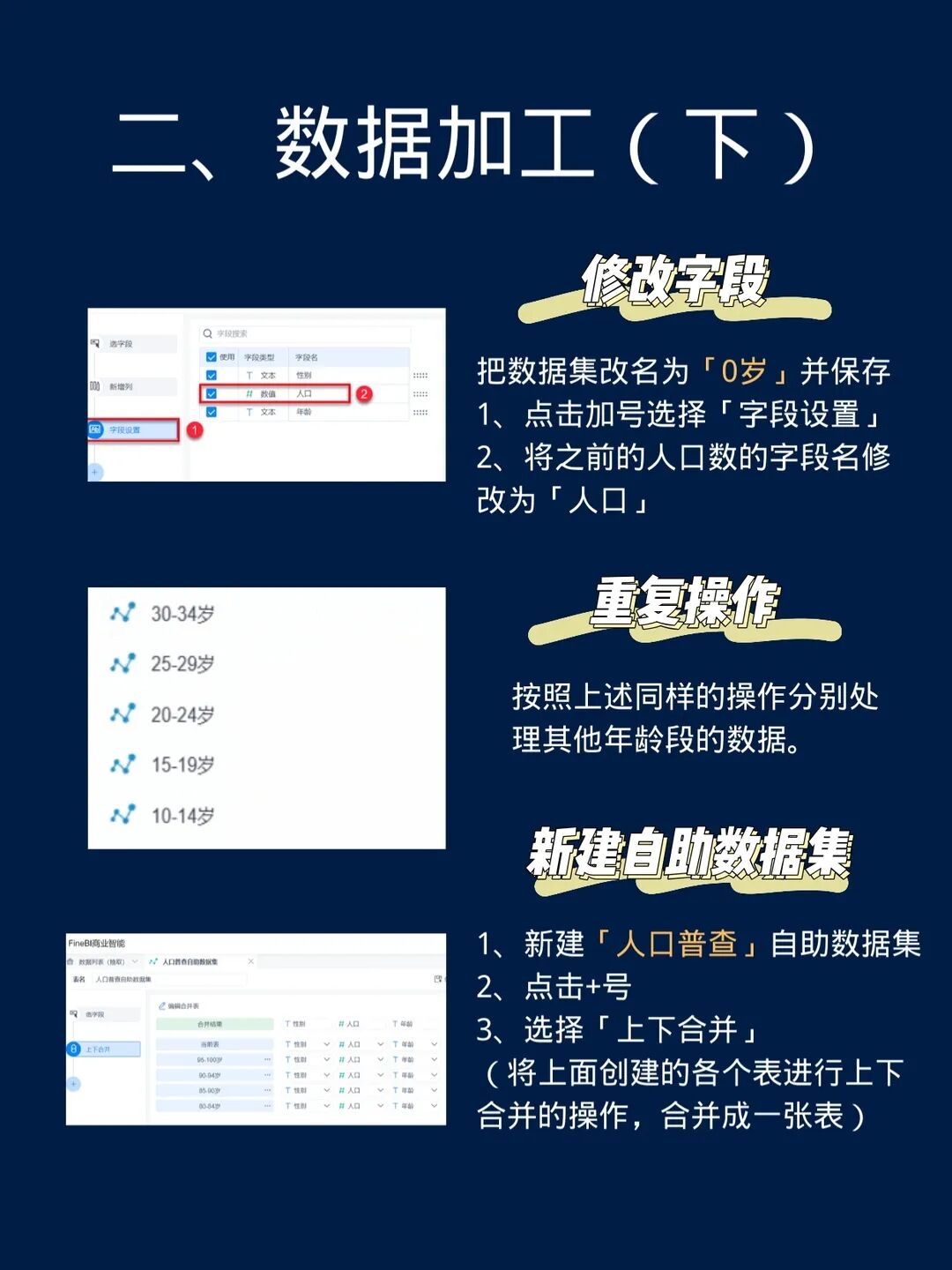 (2)再新建一个人口普查自助数据集,将上面创建的各个表进行上下合并操作,合并成一张表。