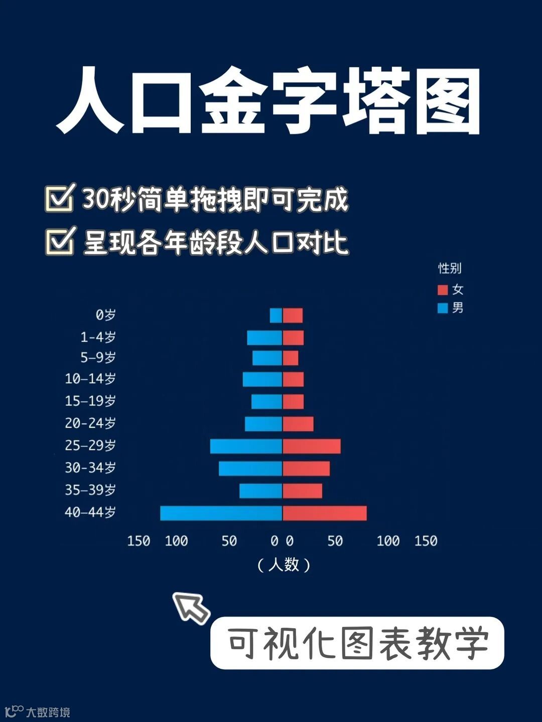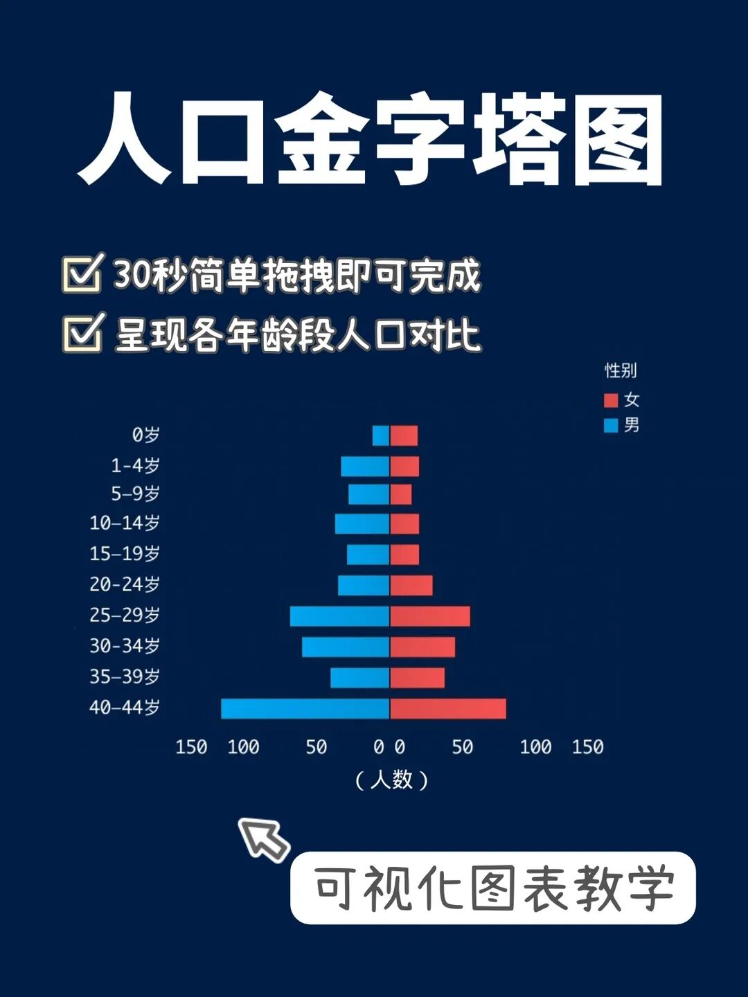 人口金字塔可以形象地表示总人口中各年龄人数的多少和相互比例,表明人口年龄构成的类型,反映人口状况。