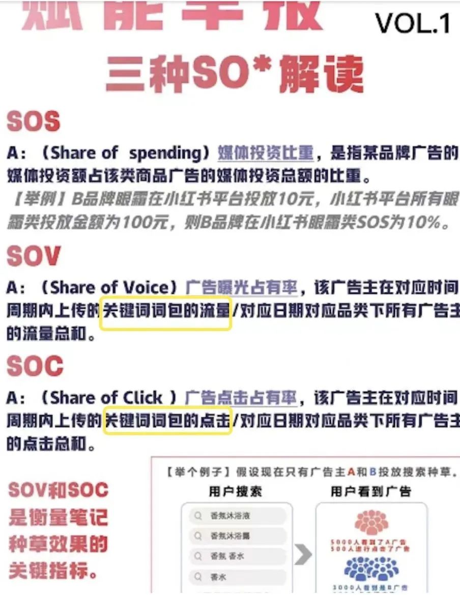 Q:想问下这个关键词词包具体指什么?sov、soc衡量指标仅是具体指在小红书效果广告投放下吗?是不包含社区种草的吗?还是社区种草(水下+报备)+效果广告?(见下图)