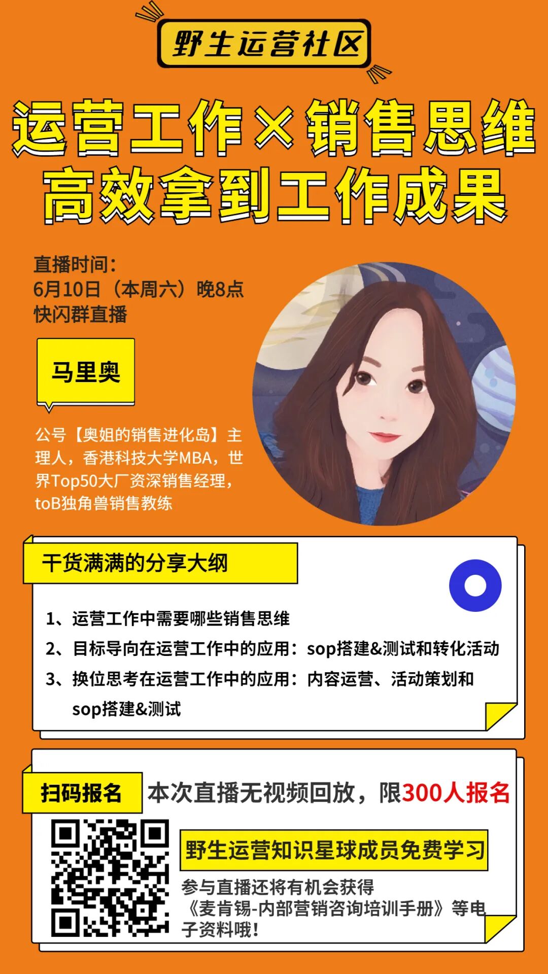 本周六晚8点,我邀请马里奥,世界Top50大厂资深销售经理,toB独角兽销售教练,带来分享《运营工作×销售思维:高效拿到工作成果》。
