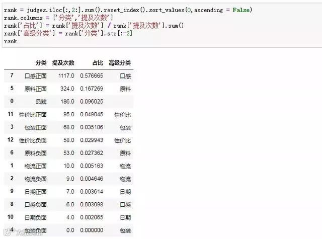 为方便理解,用了灰常丑陋的语法来一对一实现判断。包装、产品和性价比等其他模块的判断,也是沿用上述逻辑,只是在预设词上有所差异