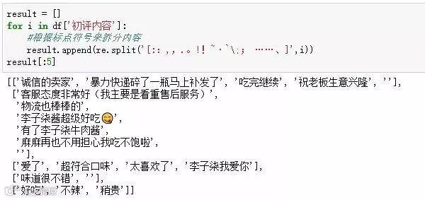 把每条评论按照标点拆分成短句,为了省事,用了简单的正则拆分: