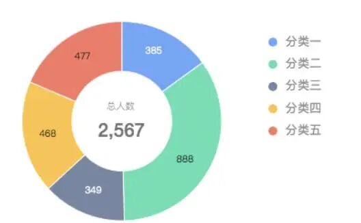 环形图:展现数据的分类和占比情况,相比饼图,环形图的可读性更高,可以把重要数据放在中间