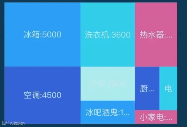 矩形树状图:清晰地显示层次结构,通过矩形面积、排列的不同来展示层次内部的占比关系