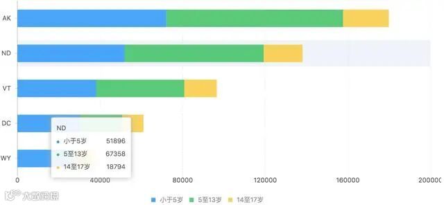 堆积条形图:表示多个类别里的各构成的对比,表明组成整体的成分情况