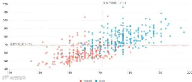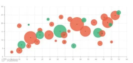 散点图:散点图通常用于显示和比较数值,不光可以显示趋势,还能显示数据集群的形状,以及在数据云团中各数据点的关系。