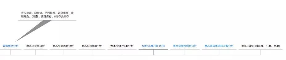 因为怕报表做出来后没价值,所以在规划的时候就“认真”一些,想办法、找资料、花时间整理出一套分析体系来,期望这分析体系能够给公司的业务带来升级的效果,比如下图的商品主题。