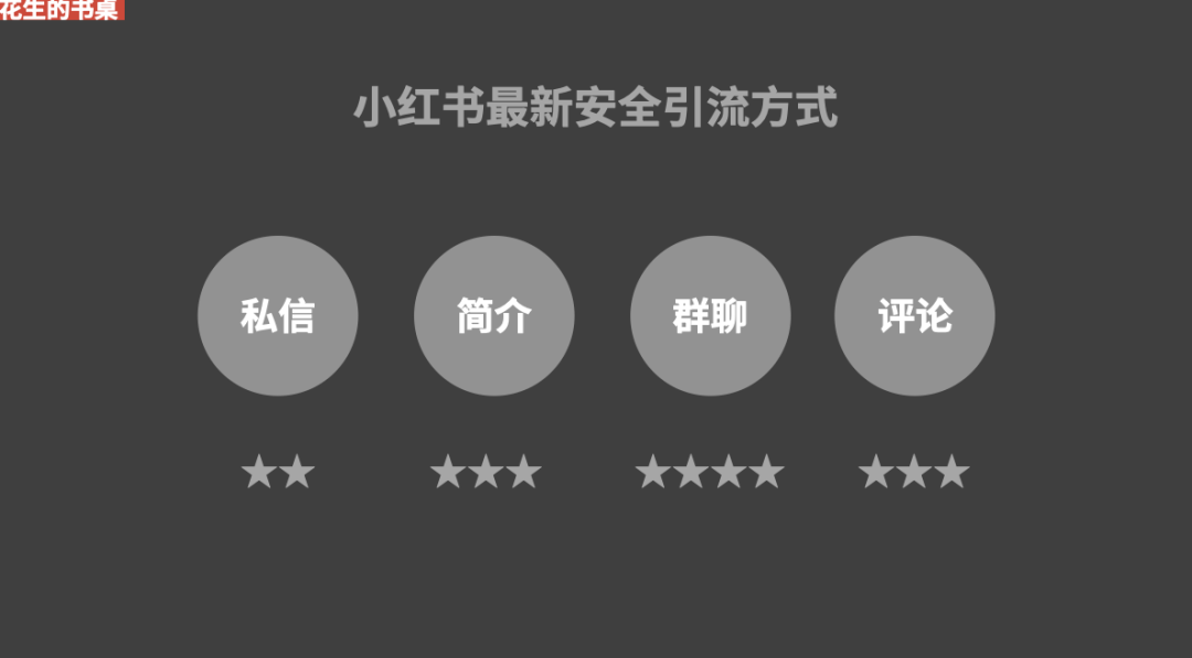 需要注意的是,无论采用何种方式进行引流,都需要注意内容的质量和策略的合理性,不能过于依赖单一的引流方式,需要多方面进行尝试和优化。同时,要根据小红书平台的特点和用户群体的特征,选择合适的引流方式和策略,今天这篇文章来自公众号花生的书桌的主理人“花生”,来分享一下几个目前还尚为安全的引流方法。