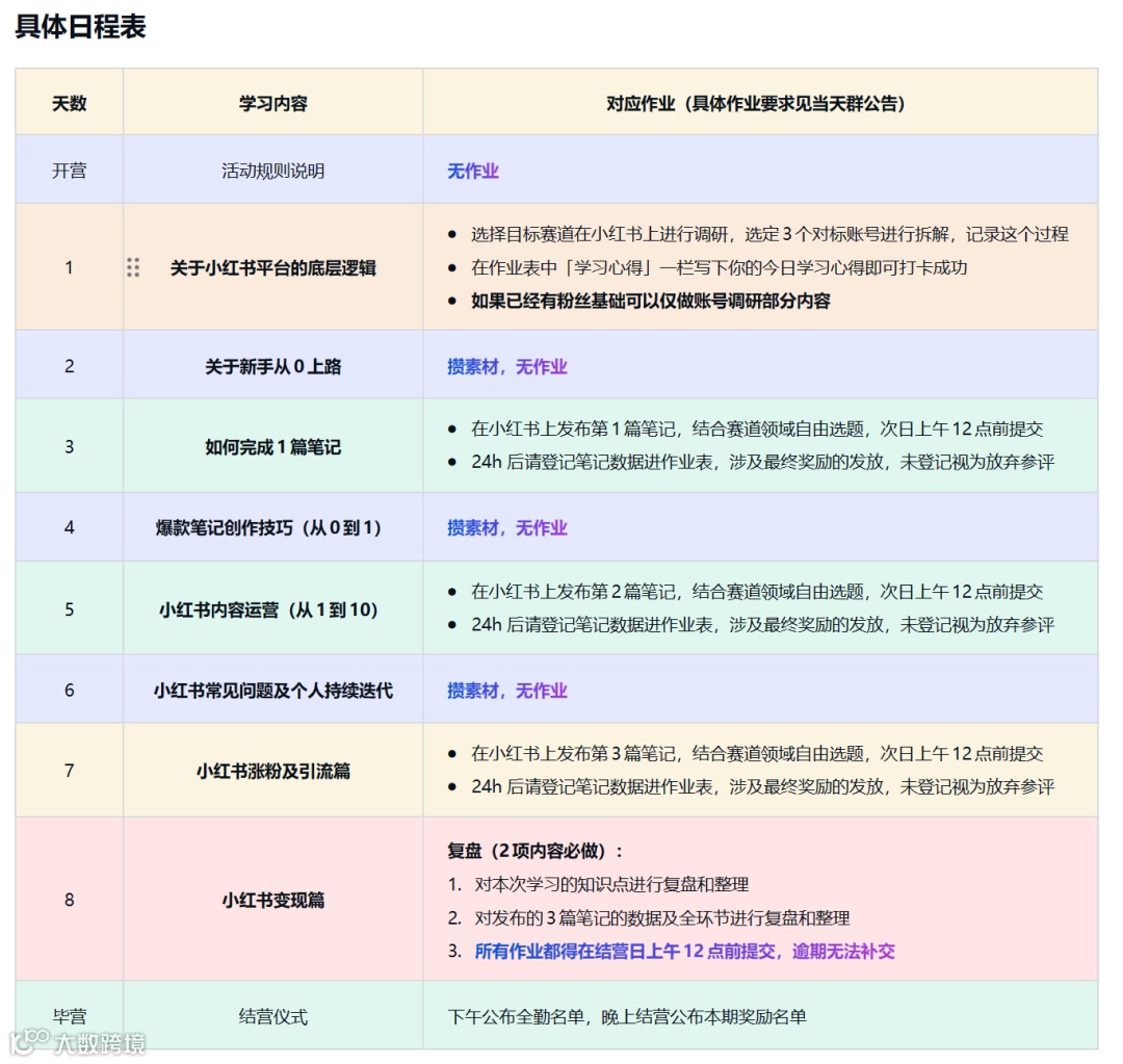 很多人心心念念的,9月份“野生运营-9天小红书实操训练营”来啦,从了解小红书内容策略到账号冷启动,再到账号对标和案例拆解,最后是自己实操下场和系统复盘,带你跑完小红书运营的全流程。具体活动要怎么参与,感兴趣的小伙伴,请继续看下去吧!