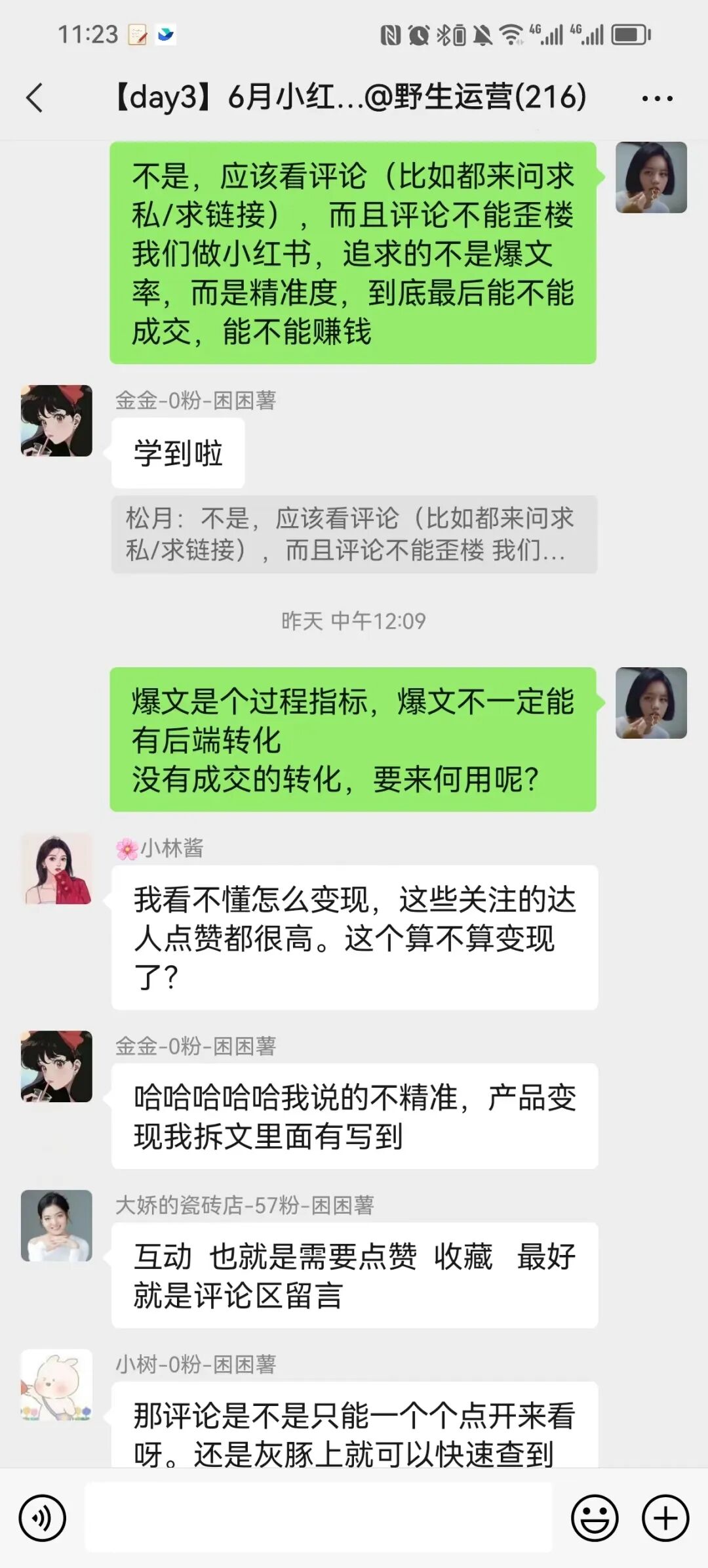 3)9天时间,同群里小伙伴交流和倒逼输出,从思维上理解小红书运营的玩法