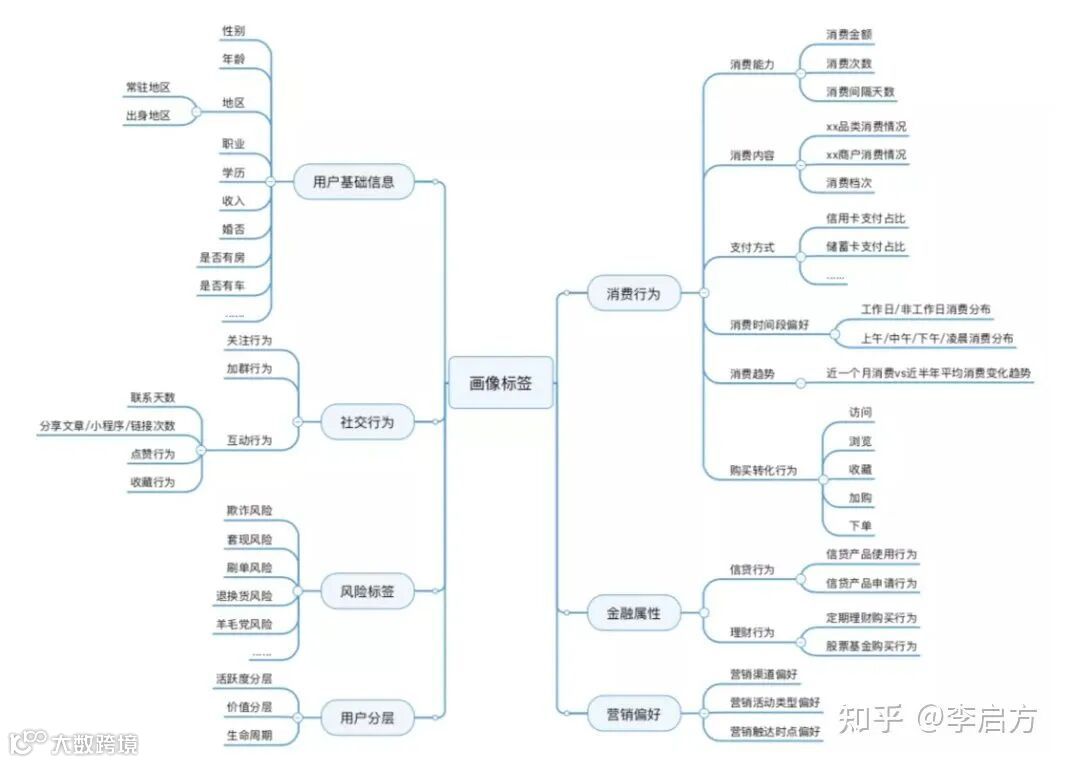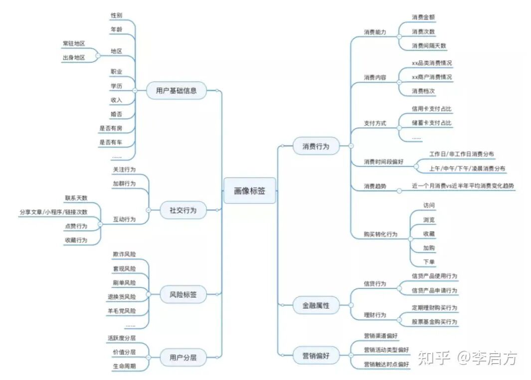 不同产品需求不同的标签组合,不同的标签组合也就形成了用户画像的模型。
