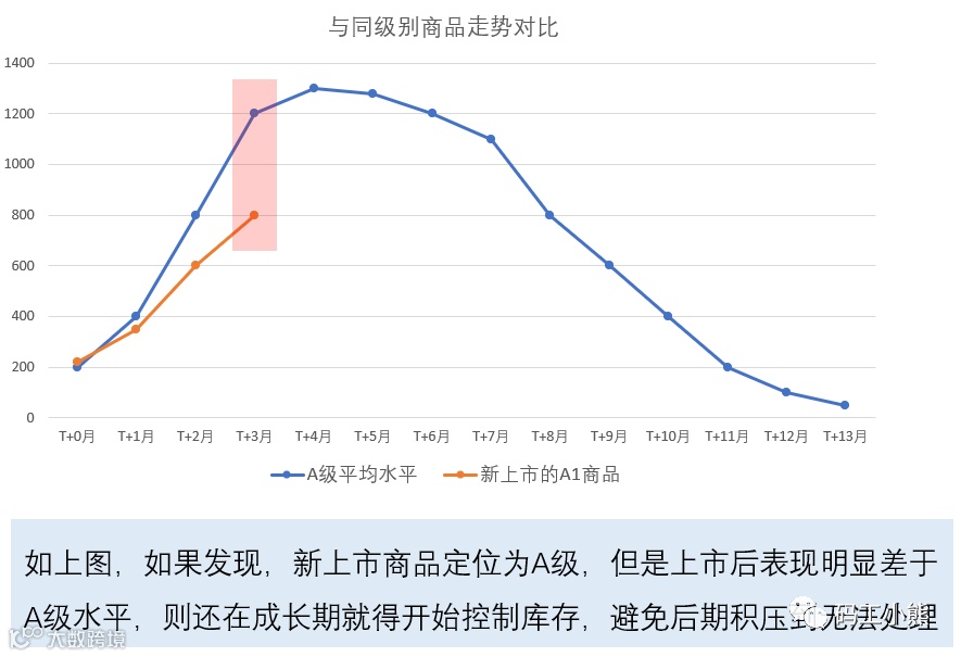 这个模型非常好用!因为很多商品,从上市开始,天生是有生命周期走势的。通过同期群分析,不但可以模拟这个走势,而且可以为每个级别的商品定出合理的LTV范围,从而及早发现商品销售是否达成预期。从而进一步地控制库存情况,实现利润最大化(如下图)。