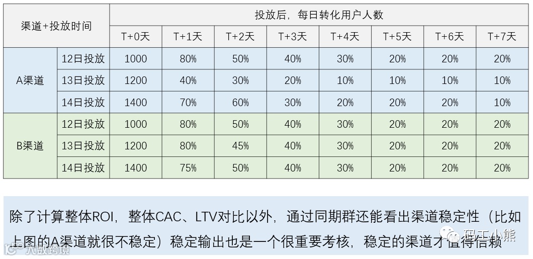 关注该渠道+投放时间进入用户,后续X天转化率/付费