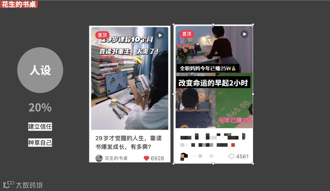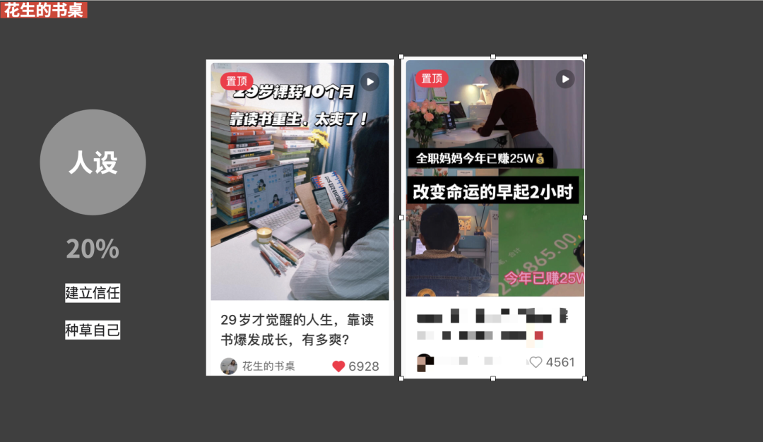 20%人设内容:人设类的内容是建立信任、是种草你自己的