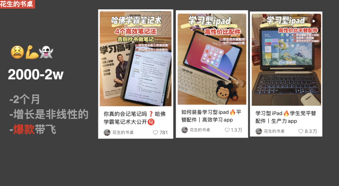 所以想要出爆款,必须得在选题、封面、标题上花更大的精力,正文内容只要高于市场平均水平就OK。