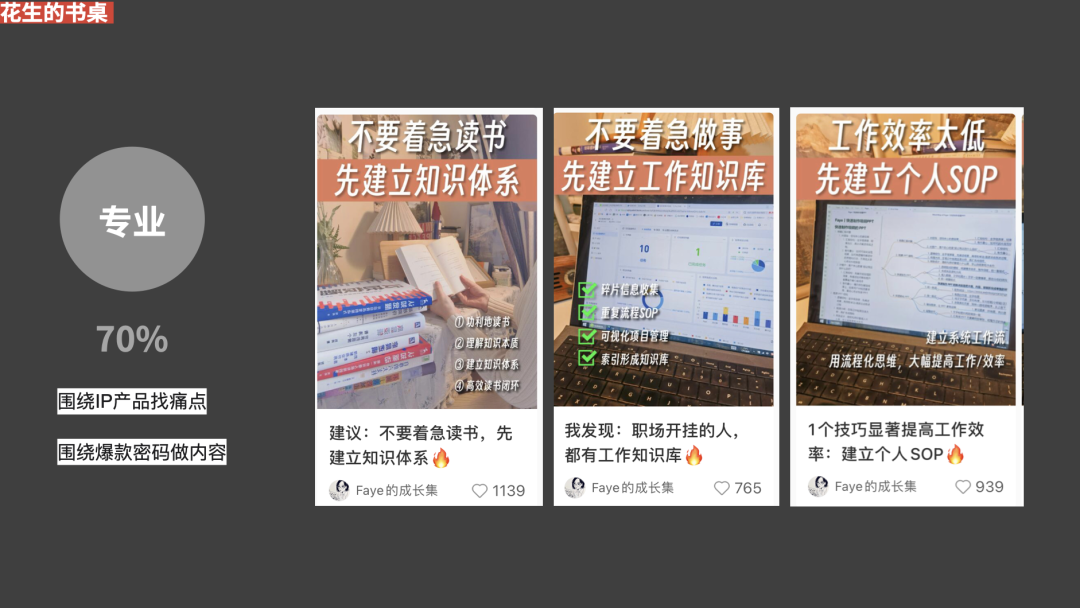 70%专业内容:围绕你的IP/产品关键词找痛点,再加上爆款的技法做叫好又叫座的专业内容。