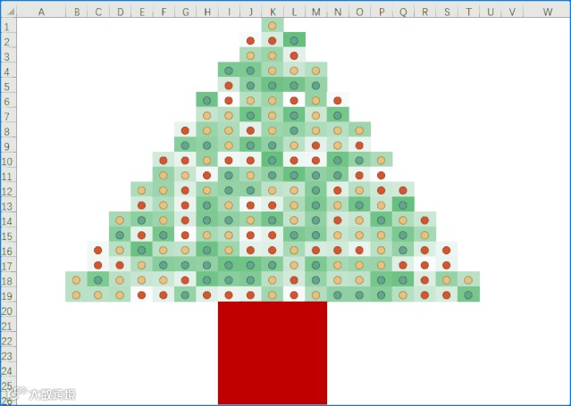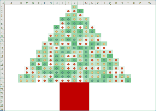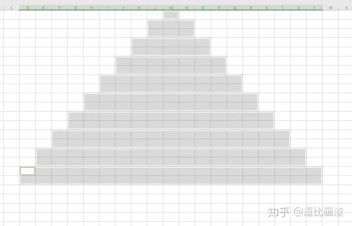 首先把你要用来画圣诞树的列,调整为合适的列宽(可以按你想画的大小自行调整)