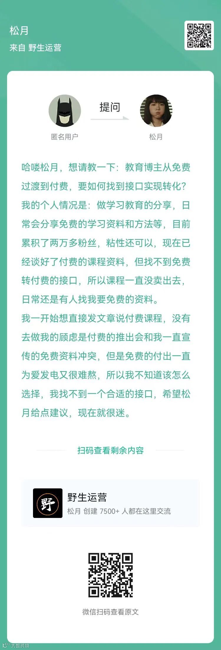 3、提问:教育博主从免费过渡到付费,要如何找到接口实现转化?(扫码查看全文)
