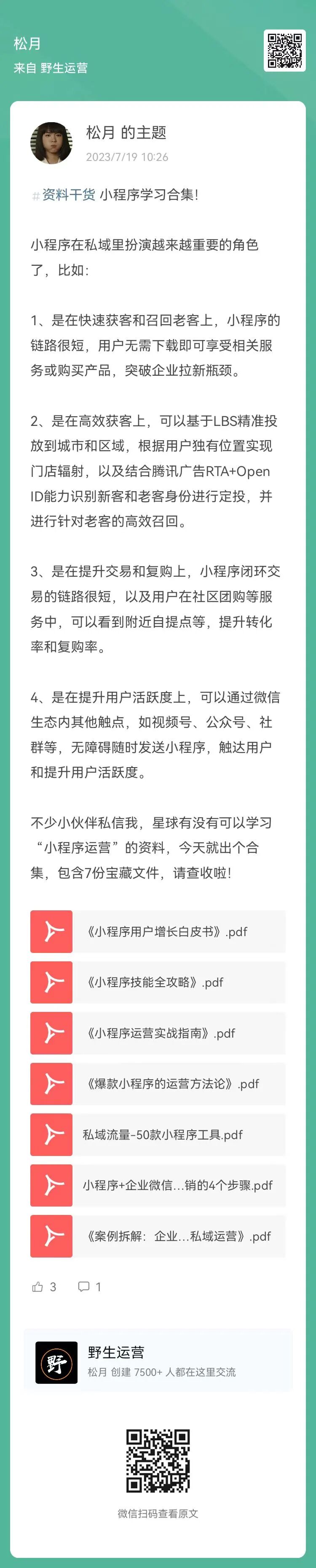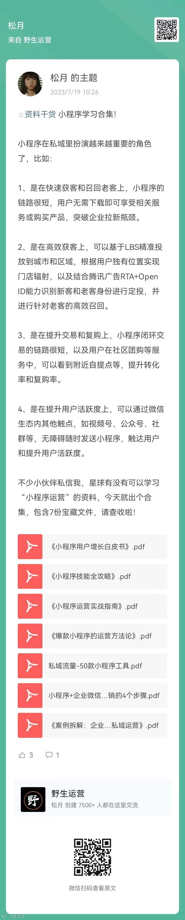 野生运营知识星球,每周会产生大量精华内容,每周一为你整理《野生运营:一周星球内参》,让你不错过任何一条有价值的信息。话不多说,这就开始!