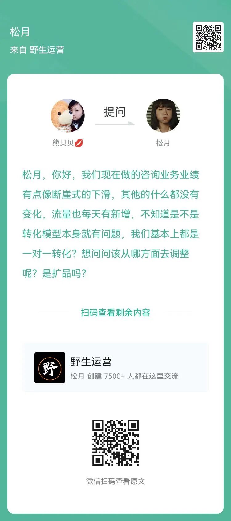 5、提问:我们现在做的咨询业务业绩有点像断崖式的下滑,不知道怎么调整?(扫码查看全文)