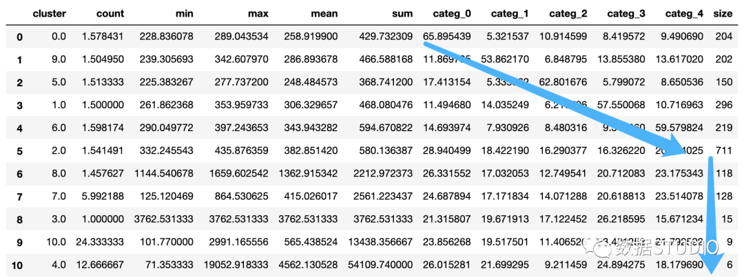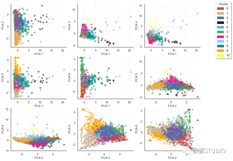 首先定义簇群数量为11个,并使用降维之前的数据进行聚类。