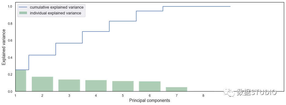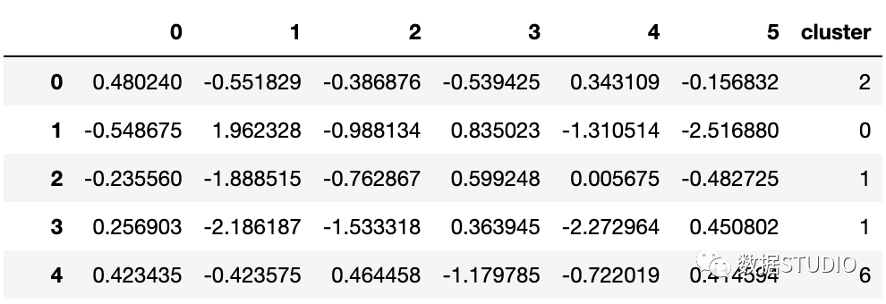 从可解释性方差图中可以看出,当维度在6维时,已经能够代表总体方差的80%以上的信息了,因此此处我们选择维度数为6。