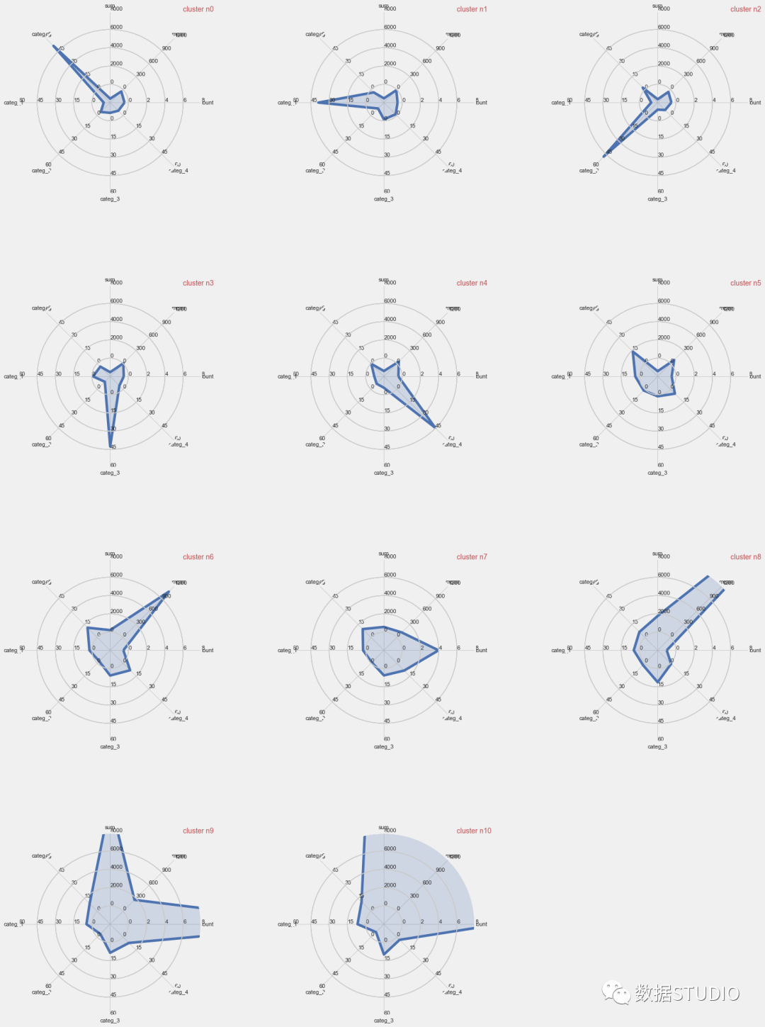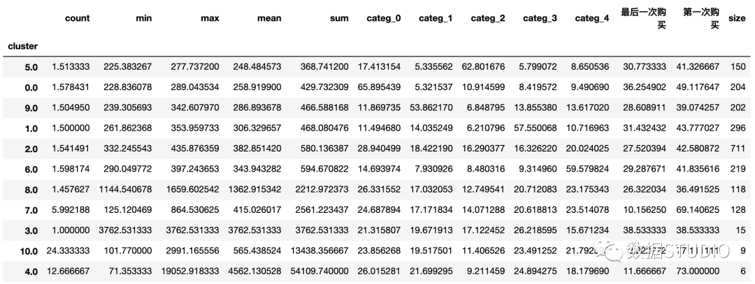 因篇幅限制,文中省略部分代码,若朋友们希望自己练习,可以在公众号后台回复“客户细分”四个字,获取完整代码和数据。