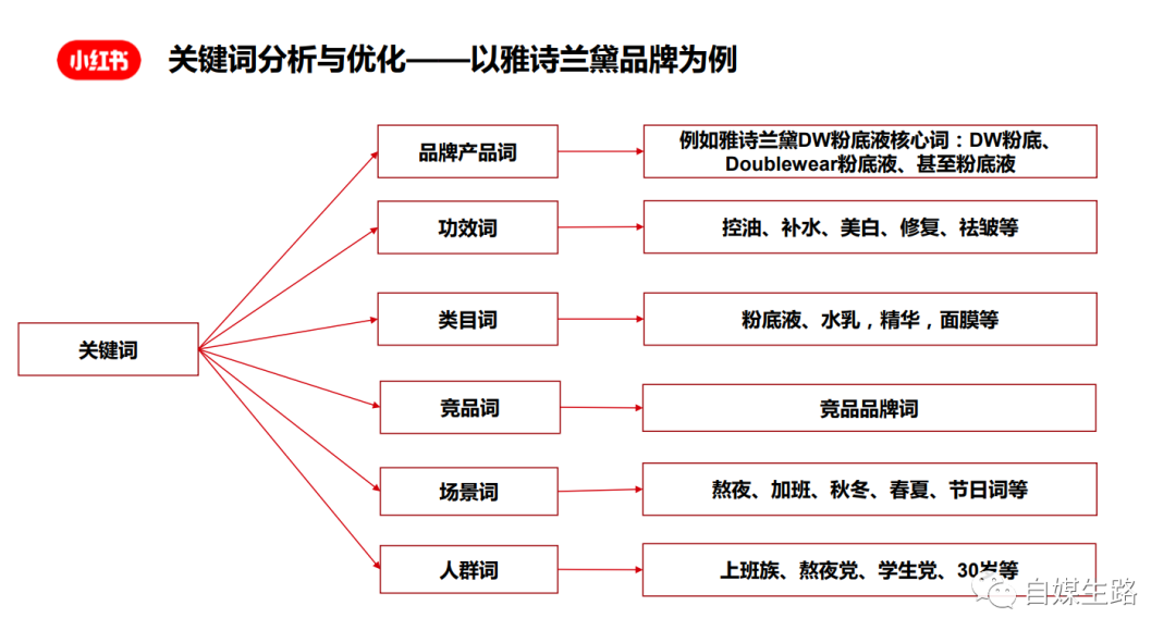 我们一般至少要看,竞品在小红书企业号是怎么做的?做了哪些动作?博主投放上是怎么做的?找了哪些博主合作?这些博主有些什么特征?预算分配是怎样的?合作的内容选题主要是哪几个?在小红书店铺和其他渠道的销量是怎样的?引流路径是怎样的?关键词搜索结果是怎样的?