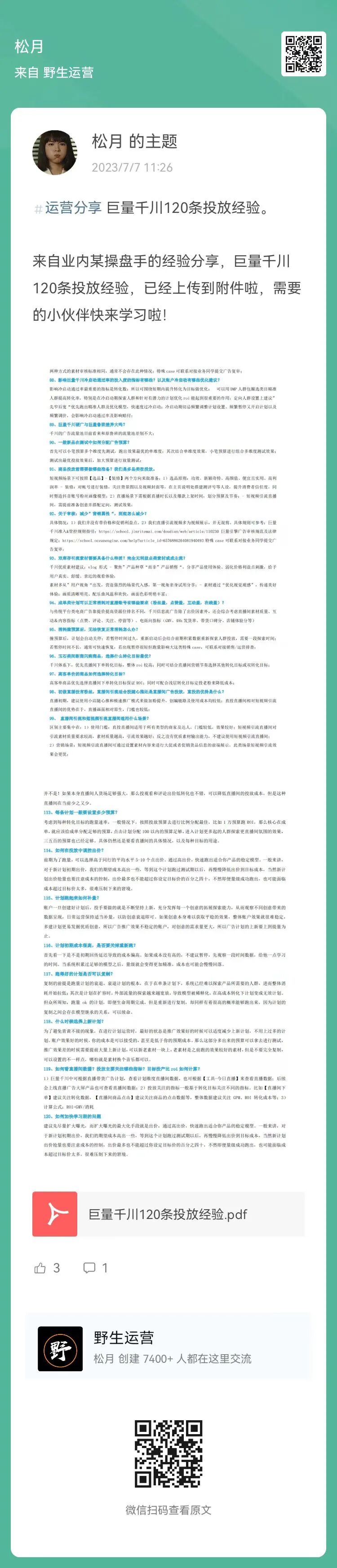15、松月:巨量千川120条投放经验(扫码查看全文)
