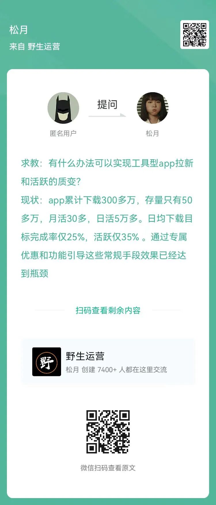 5、提问:有什么办法可以实现工具型app拉新和活跃的质变?(扫码查看全文)