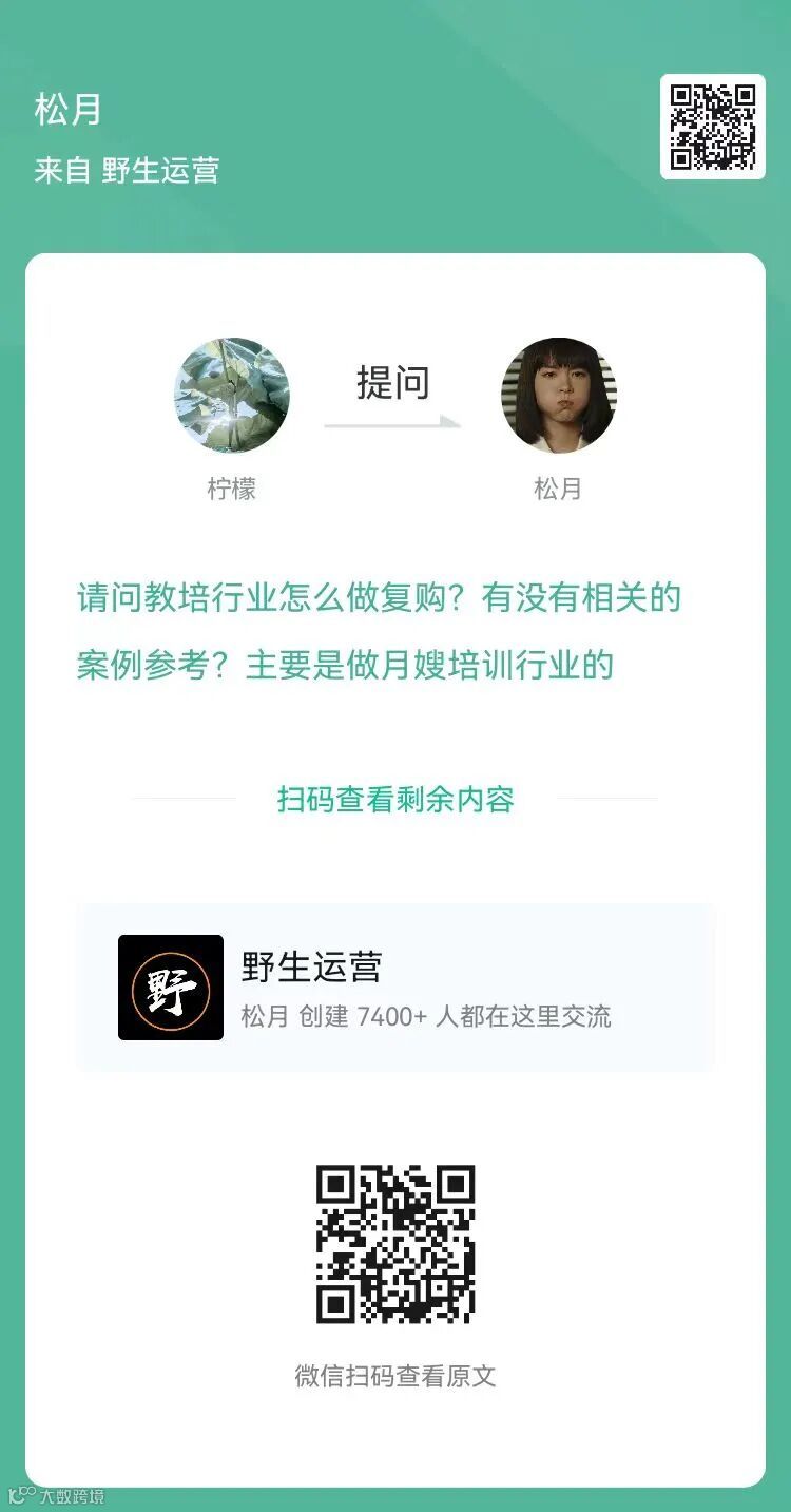 3、提问:请问教培行业怎么做复购?有没有相关的案例参考?主要是做月嫂培训行业的 (扫码查看全文)