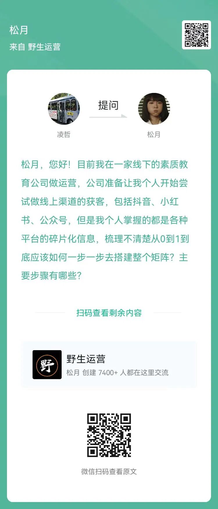 8、提问:目前开始尝试线上各个平台获客,从0到1应该如何一步一步去搭建整个矩阵?主要步骤有哪些?(扫码查看全文)